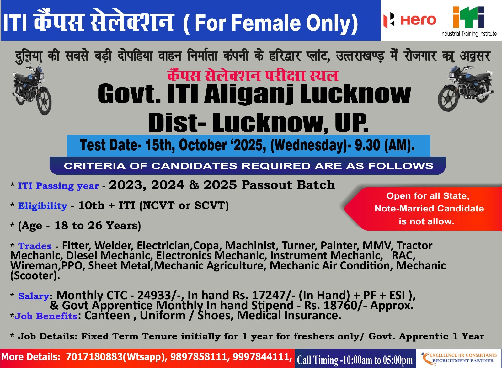 Hero MotoCorp Recruitment 2025 | ITI Job Campus Placement | ITI Job Alert