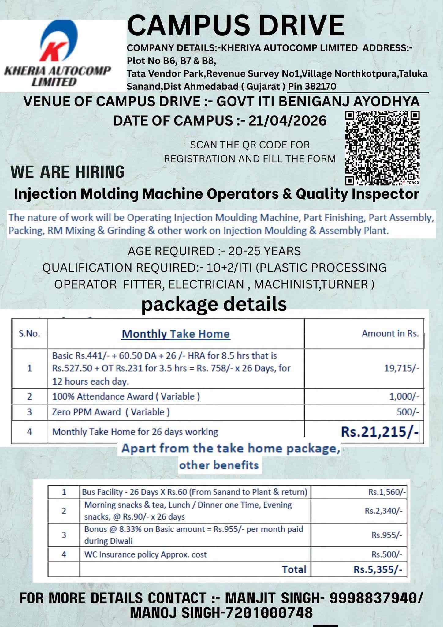 Kheriya Autocomp Limited Recruitment 2026: Friends, if you are looking for a good job, the Kheriya Autocomp Limited Recruitment 2026 presents an excellent opportunity for you. To avail yourself of this opportunity, you may appear at Govt. ITI Beniganj, Ayodhya, at the scheduled time.