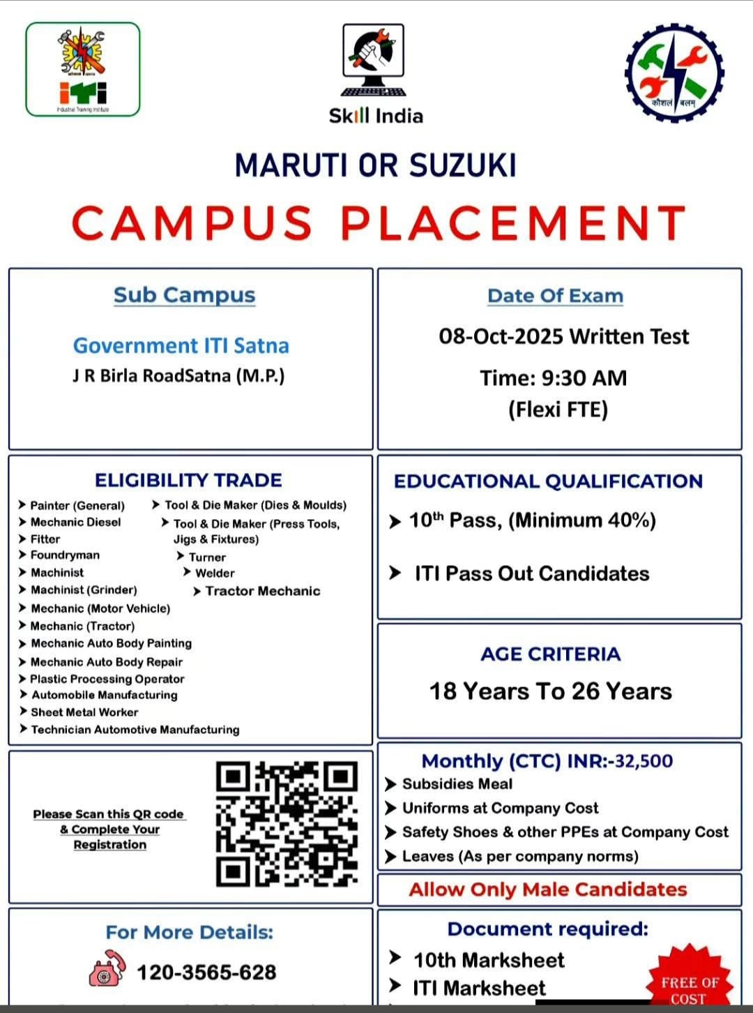 Campus Venue: Government ITI Satna, JR Birla Road, Satna (MP).