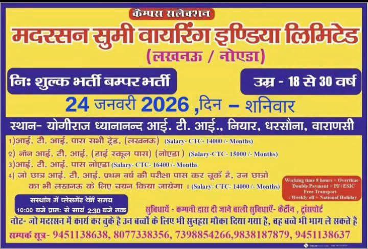 The campus placement for the Motherson Sumi Job Vacancy 2026 is being held on 16 February 2026, starting at 10:00 AM. The post answers all your questions, including where the campus drive is located, what documents are required, and salary. Please read the post until the end.