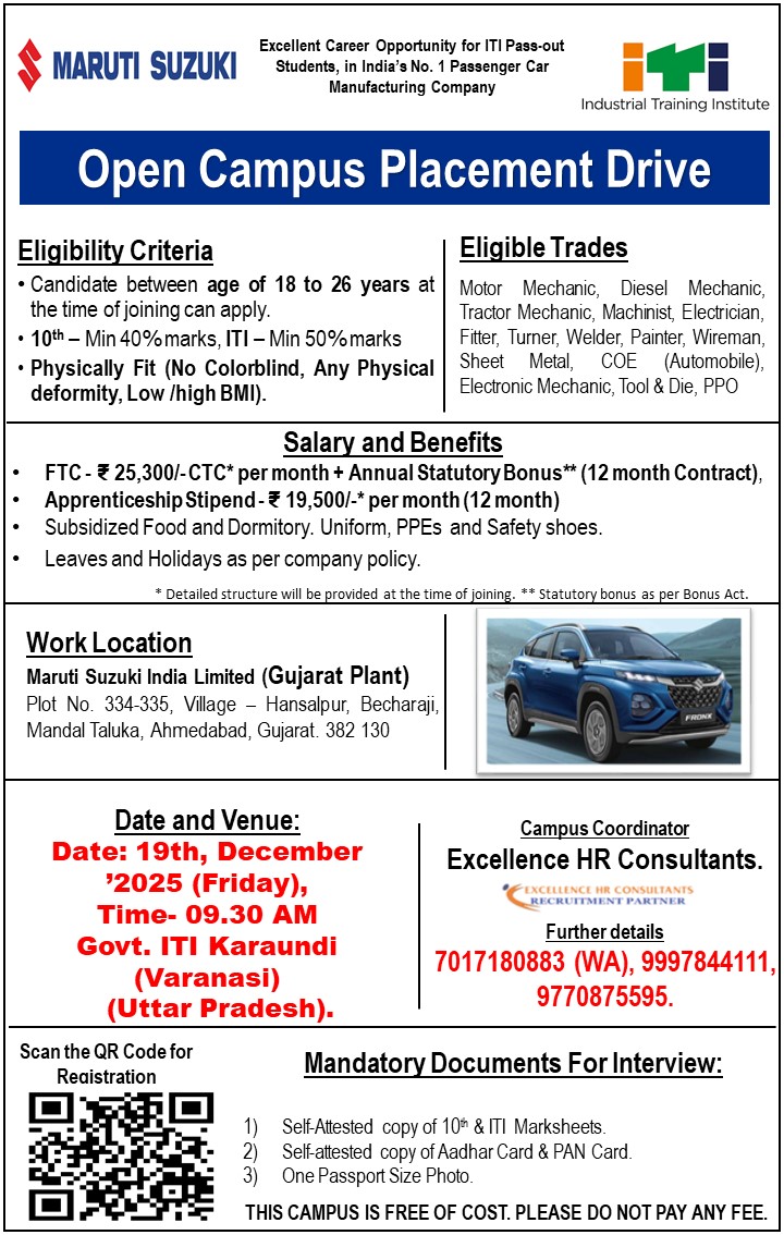 Related Jobs: 100+ Job Campus Placement 2025 | Latest ITI Pass Jobs | Diploma Pass Jobs