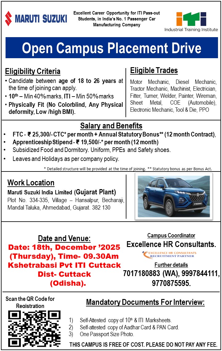 Campus Venue: Kshetrabasi Pvt ITI Cuttack, Dist.- Cuttack (Odisha).